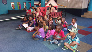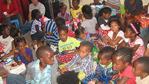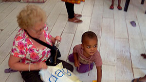 Bible Group ChicagoVisit from church and Bible Group, Chicago - entertaining children with a Bible story and singing. |